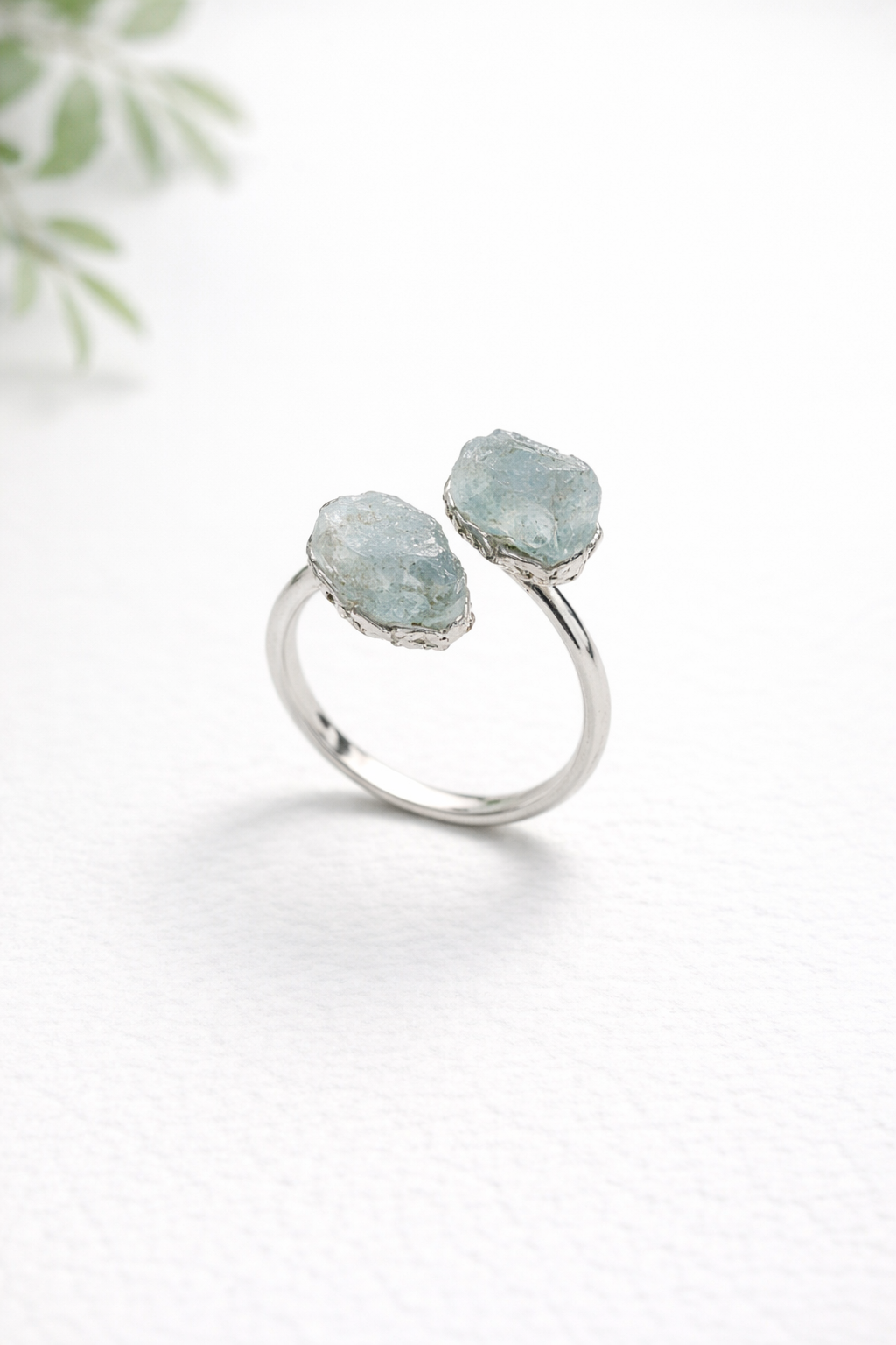 Anel Duas Pedras Água Marinha – Prateado
