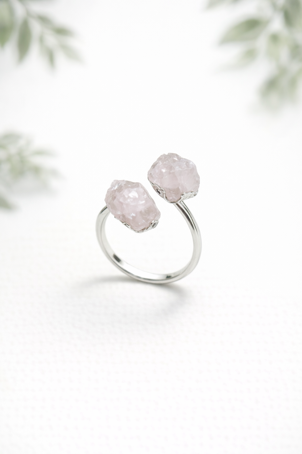 Anel Duas Pedras Quartzo Rosa – Prateado