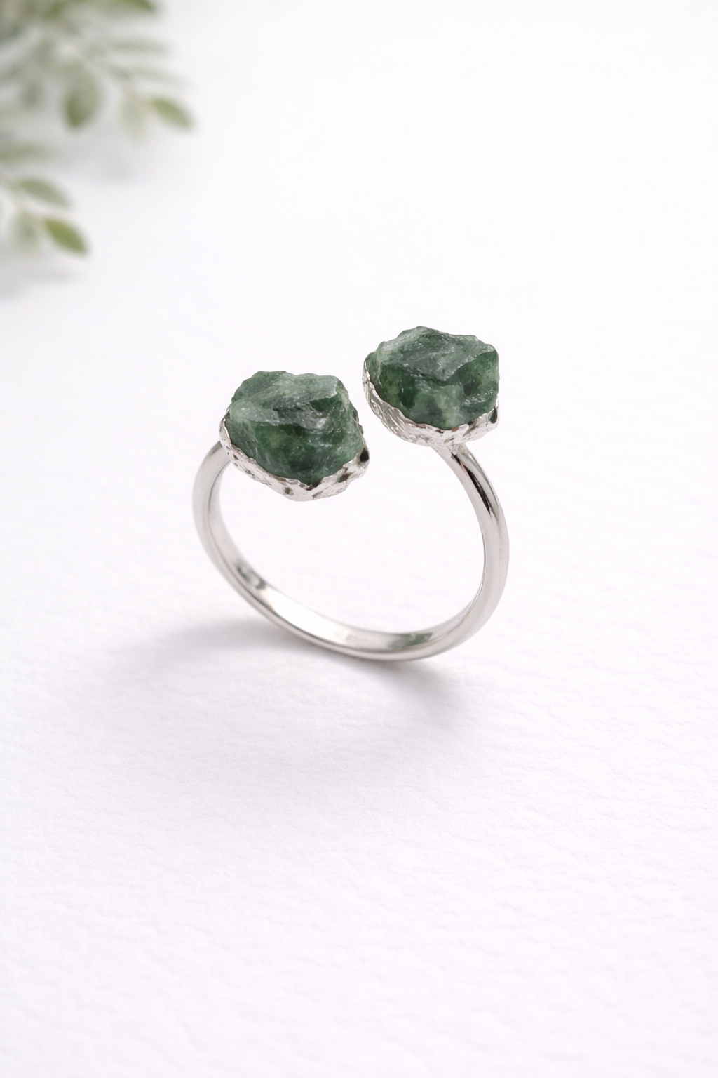 Anel Duas Pedras Quartzo Verde – Prateado