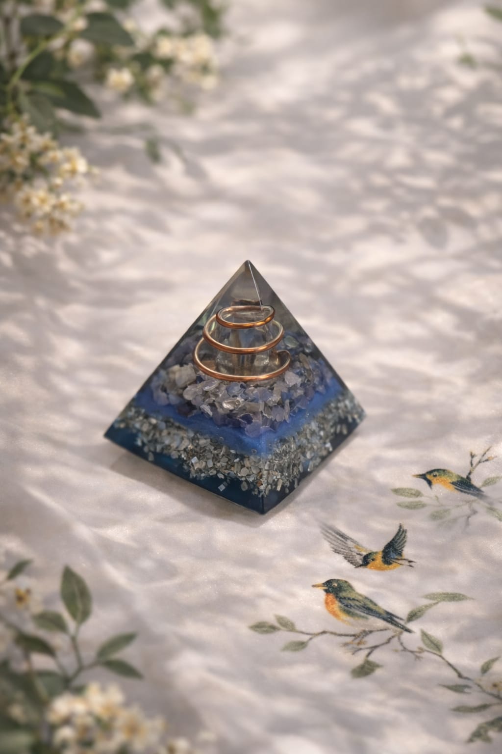 É formada pela combinação de resina, metais e pedras naturais, criando um campo de harmonização energética. É utilizada para auxiliar na transformação de energias densas em vibrações mais equilibradas. Muito usada para proteção energética e limpeza de ambientes, também pode ser colocada em espaços de meditação, trabalho ou descanso, contribuindo para um ambiente mais harmonioso.