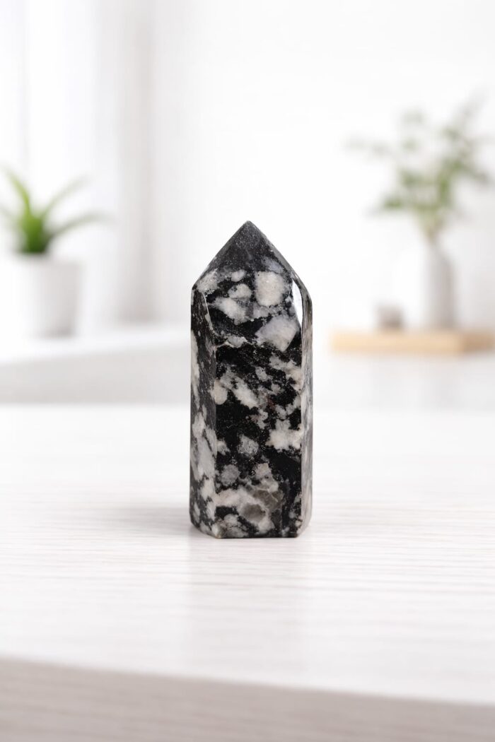 Combina a amplificação energética do cristal com a forte proteção da turmalina negra. Essa ponta auxilia na limpeza e proteção contra energias negativas, promovendo equilíbrio, aterramento e fortalecimento energético.