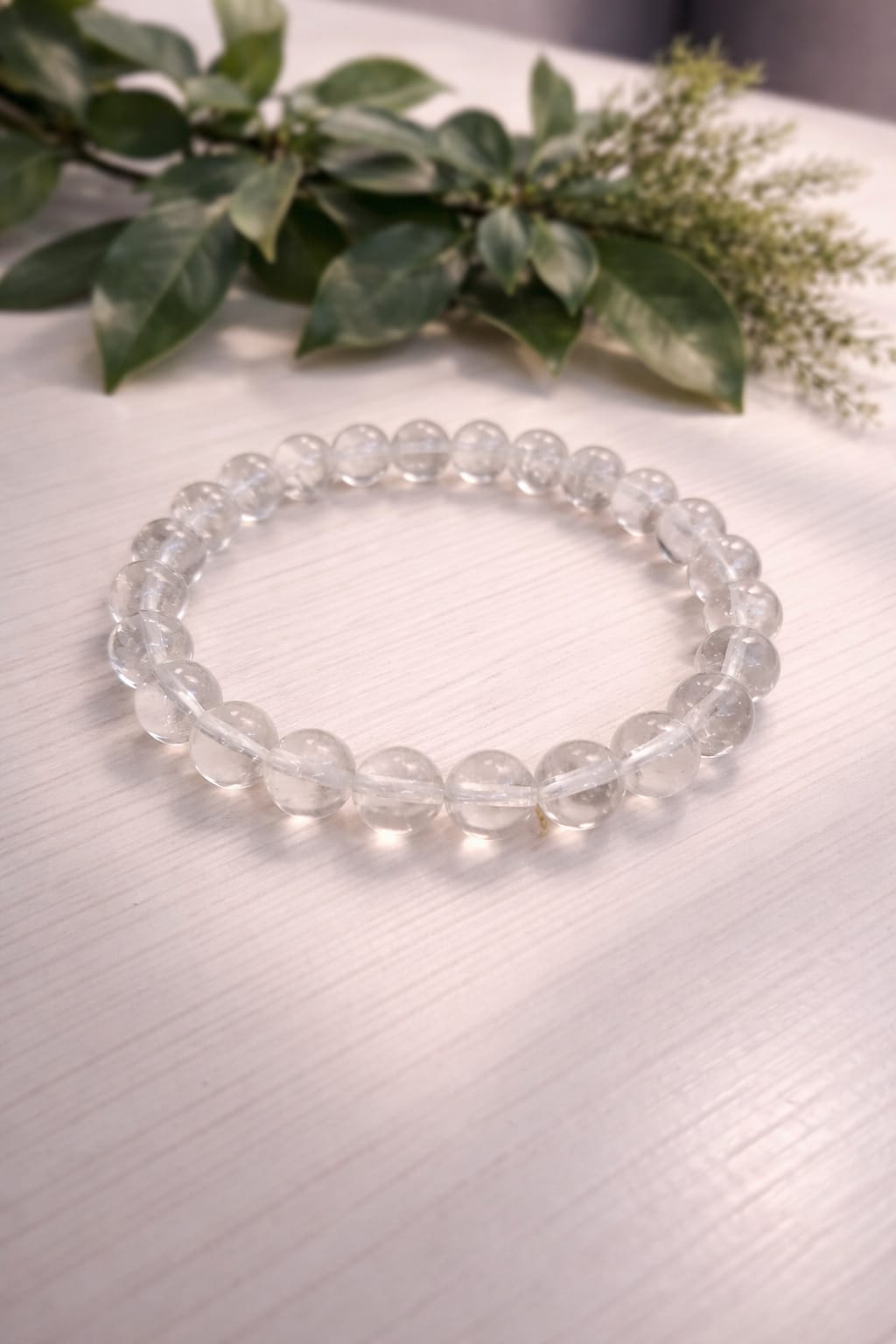 A pulseira de cristal transparente é conhecida por amplificar energias positivas e promover clareza. Auxilia na harmonização energética e no equilíbrio geral.